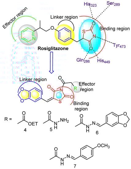 - Feng, J.; Lu, Y.; Cai, Z.F.; Zhang, S.P.; Guo, Z.R. Design, synthesis and in vitro evaluation of a series thiazolidinediones analogs as PPAR modulators. Chin. Chem. Lett. 2007, 18, 45–47. [Google Scholar] [CrossRef]