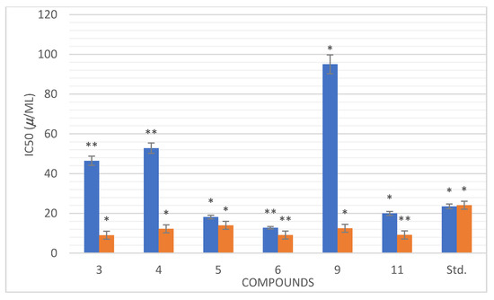 | Cpd. | Ref.Inhibtor | 3 | 4 | 5 | 6 | 9 | 11 |