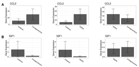 Nonagenarians express higher levels of IGFBP2 than healthy children (Figure 6C). Progeria patients present a higher IGFBP2 expression than healthy children (Figure 6D) and even higher IGFBP2 levels than nonagenarians (Figure 6E). Healthy children (Figure 6C) and progeria patients (Figure 6E) express more UCP2 than nonagenarians. At the same time, progeria patients have higher UCP2 levels than healthy children (Figure 6D).