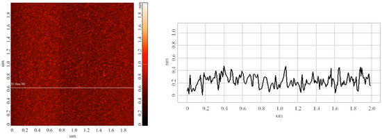 Typical AFM image (left) obtained in the blank experiment with the use of pure 2 mM protein-free PBSD buffer. (Right) panel displays a cross-sectional profile corresponding to the white line in the AFM image shown on the left. For the AFM image, scan size is 2 µm × 2 µm, and Z scale is 2 nm.
