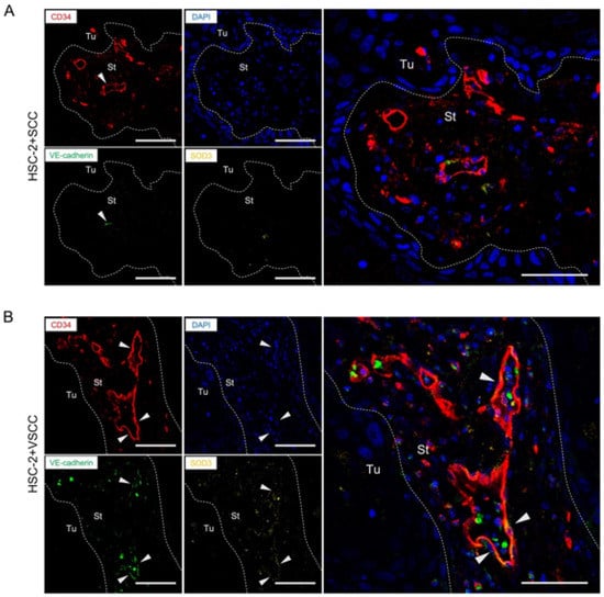 3.1. Vascular Architecture Is Different between HSC-2+SCC and HSC-2+VSCC Xenografts