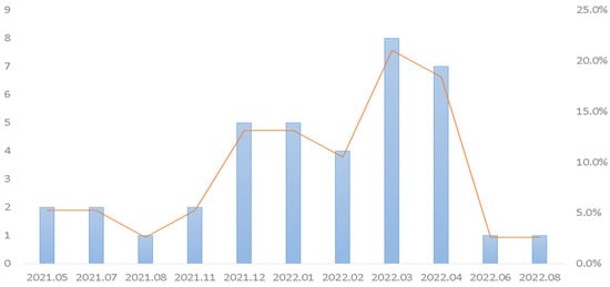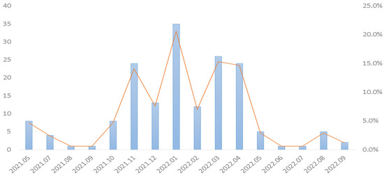 Monthly distribution of isolation rates of adenovirus from emergency patients in central Taiwan from May 2021 to September 2022.