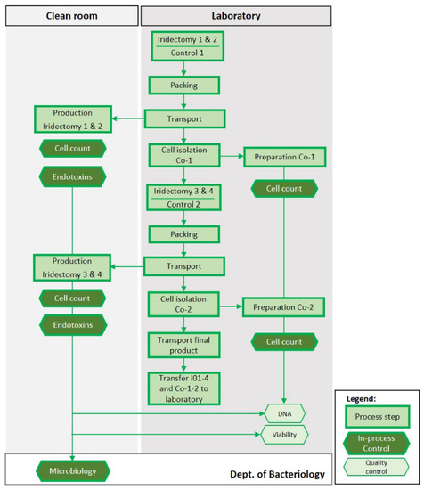 | Starting material (stroma) | Eur. Ph. Method 11.0, 2.6.: microbiology (stroma) | 0 CFU | N.A. | Antibiotic regimen; not critical for batch release |