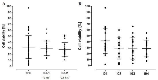 | Cell viability | Percentage viable cells | tIPE ≈ Co-1/2 | N.A. | N.A. (not measured) |