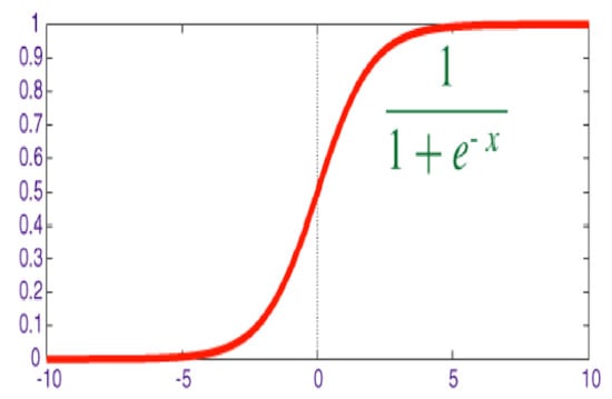 The sigmoid function is a mathematical function that has an S-shaped curve and can map any numerical value into a small range of numbers i.e., between 0 and 1. The logistic function of the sigmoid function is mostly used in neural networks, so it is also referred to as the logistic sigmoid function [46]. It was used as the last layer in our CNN model to transform the outcome of our proposed model into a probability score. The formula for a sigmoid function [50] and its graphical representation are described in Figure 4.