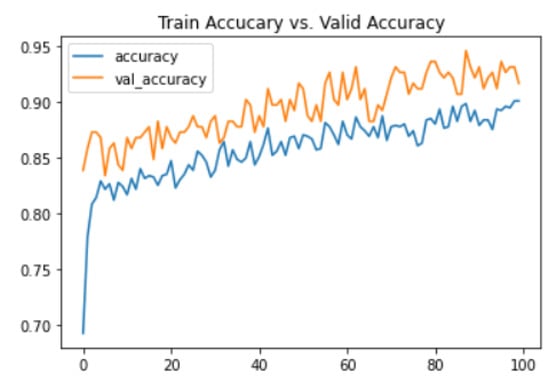 Figure 7 shows the training and validation accuracy represented in the form of a graph. Training accuracy was 90.12%, and accuracy after data validation was 91.91%.