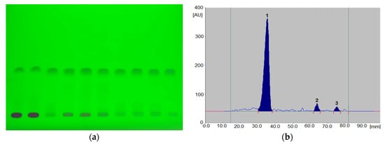 Qualitative analysis was conducted on the basis of RF values and absorption spectra in the range of 200–400 nm, recorded directly from chromatograms (Figure 1).