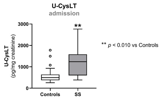 3.2. Urinary Cysteinyl Leukotrienes at Admission