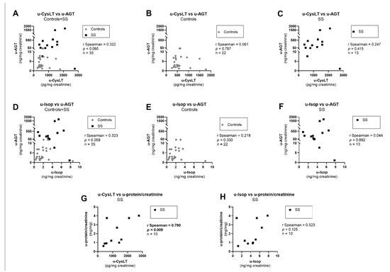 | u-AGT (ng/mg creatinine) | 256 (45; 549) | 13 | 104 (57; 361) | 8 | 316 (143; 1735) | 6 |