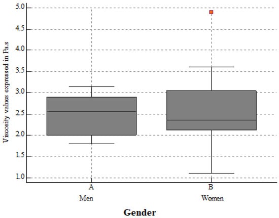 The mean kidney viscosity values in healthy men and women. No significant differences between Vi PLUS mean values were found (p = 0.8964).