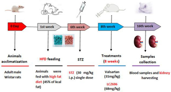 STZ was purchased from Sigma-Aldrich, Inc., (St. Louis, MO, USA), valsartan, Tabuvan® 80 mg from (Tabuk pharmaceutical Manufacturing Co., Tabuk, Saudi Arabia), and LCZ696 (sacubitril/valsartan, Entresto™ 200 mg from Novartis Pharma AG, Basel, Switzerland). All other chemicals and reagents were of the highest analytical grade commercially available.
