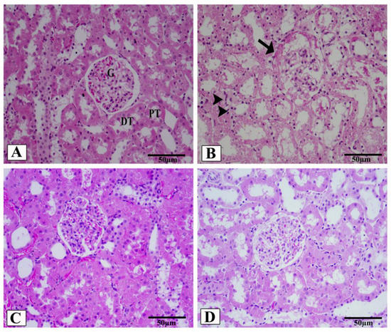 Glucose levels in serum were measured using a commercially available kit (Randox Laboratories Ltd., Crumlin, UK and SPI bio, Montigny le Bretonneux, France). ELISA was utilized to measure insulin levels (Merck Millipore, Burlington, MA, USA). The levels of creatinine and urea were measured using colorimetric techniques (Linear Chemicals, Barcelona, Spain). The serum concentrations of NF-κB, IL-1β, TNF-α, IL-6, and IL-10 were measured using ELISA techniques (Thermo Scientific, Rockford, IL, USA).