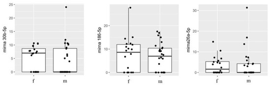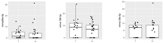 Boxplot comparing microRNA in females and males.