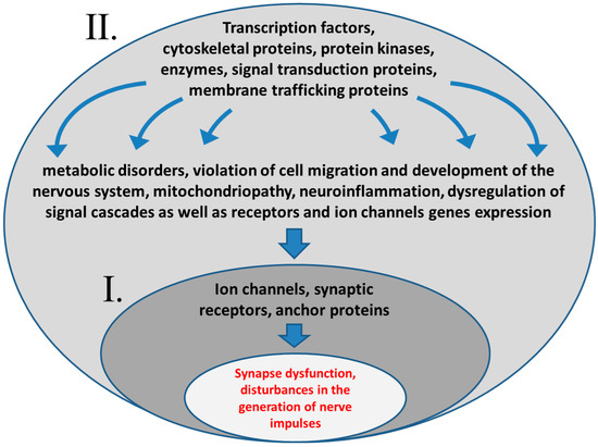 Mutations leading to the development of epilepsy may affect genes directly involved in the generation and transmission of nerve impulses (group I), or genes responsible for the development and metabolism of the nervous system (group II). In the second case, violations of the functions of ion channels and specific synaptic proteins occur indirectly.