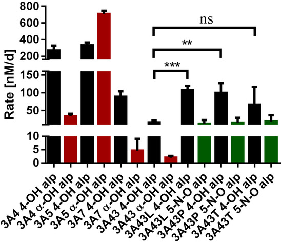 - Neunzig, I.; Widjaja, M.; Dragan, C.A.; Peters, F.T.; Maurer, H.H.; Bureik, M. Engineering of human CYP3A enzymes by combination of activating polymorphic variants. Appl. Biochem. Biotechnol. 2012, 168, 785–796. [Google Scholar] [CrossRef]