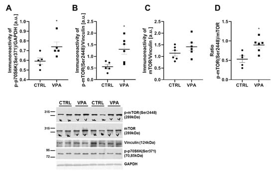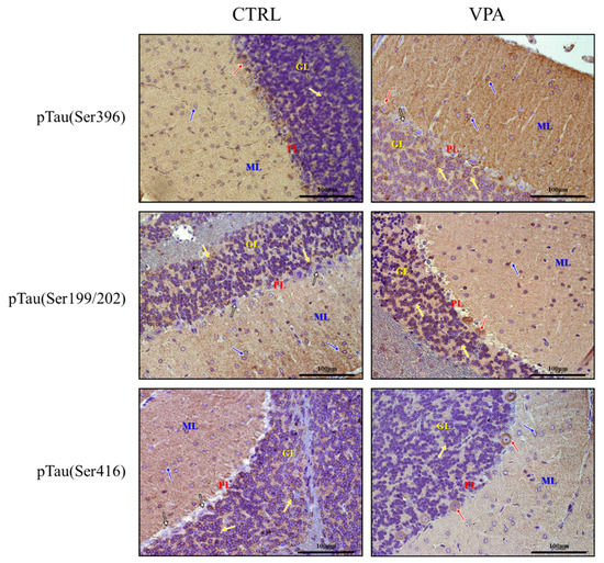 3.2. Prenatal Exposure to VPA Leads to Alterations in the Phosphorylation Status of MAP-Tau Protein in the Cerebellum of Adolescent Rat Offspring