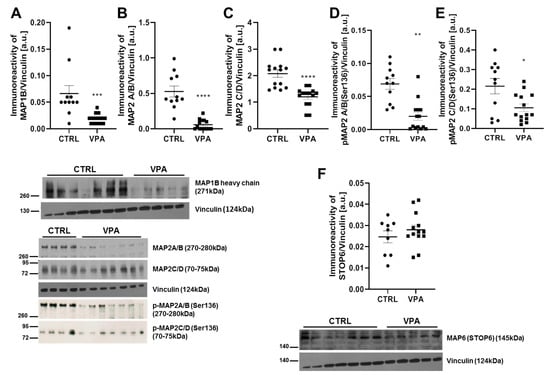 3.4. Prenatal Exposure to VPA Induces Changes in the Level of the Other Structural MAPs in the Cerebellum of Adolescent Rat Offspring
