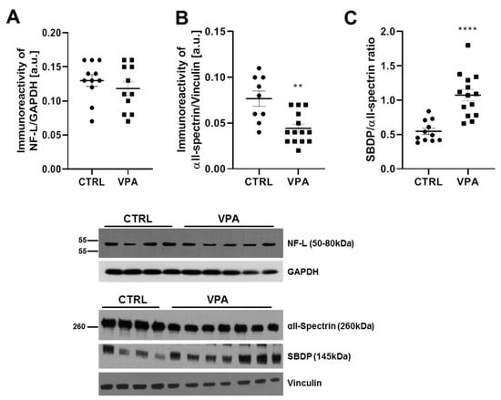 3.5. Prenatal Exposure to VPA Induces Changes in the Level of the Other Major Cytoskeletal Proteins in the Cerebellum of Adolescent Rat Offspring