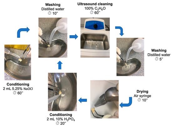 - Conditioning with 2 mL of 10% phosphoric acid for 20 s;