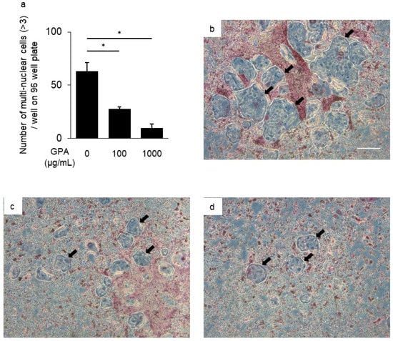 3.3. Inhibitory Effect of GPA in Osteoclast Differentiation