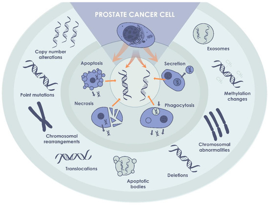 ctDNA in PCa. ctDNA, originating from cancer cells, may be detected in biological fluids of patients with non-metastatic PCa, and can be used as a biomarker of the disease.