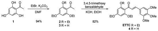 2.1. Synthesis of (E)-1-(2,4,6-triethoxyphenyl)-3-(3,4,5-trimethoxyphenyl)prop-2-en-1-one (ETTC)