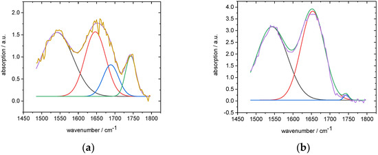 Fitted spectral range from 1450 to 1800 cm-1: (a) control group (b) BPC 157-treated group.