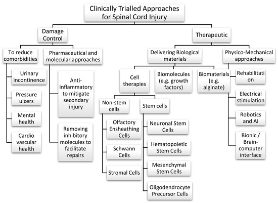 - Silva, N.A.; Sousa, N.; Reis, R.L.; Salgado, A.J. From basics to clinical: A comprehensive review on spinal cord injury. Prog. Neurobiol. 2014, 114, 25–57. [Google Scholar] [CrossRef] [PubMed]
