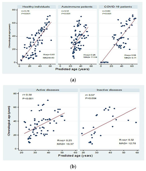 Chicago/Turabian StyleFarag, Amina A., Taghrid G. Kharboush, Noha H. Ibrahim, Mohamed Darwish, Iman M. Fawzy, Hanaa El-Sayed Bayomy, Dina Saad Abdelmotaleb, Shaza Abdul Basset Abdul Basset, Amal M. Abdel-Kareim, Mohammed Al mohaini, and et al. 2022. "Exploiting Signal Joint T Cell Receptor Excision Circle to Investigate the Impact of COVID-19 and Autoimmune Diseases on Age Prediction and Immunosenescence" Biomedicines 10, no. 12: 3193. https://doi.org/10.3390/biomedicines10123193