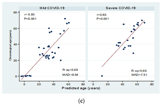 | COVID-19 patients | Mild | 35 | <0.001 | 0.69 | 0.68 | 11.69 | 8.94 | −6.48 (−8.01 to −4.95) | Y = −44.24 − 6.48X |