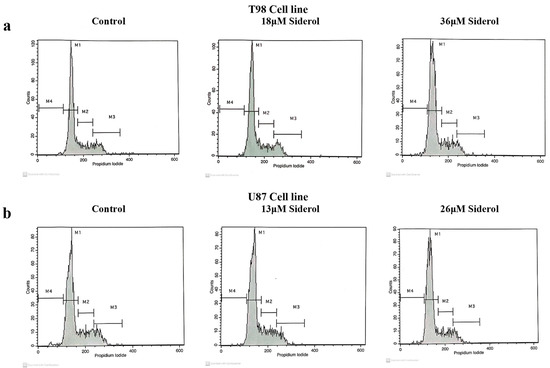 3.3. Siderol Induced G0/G1 Cell Cycle Arrest in Both Cell Lines