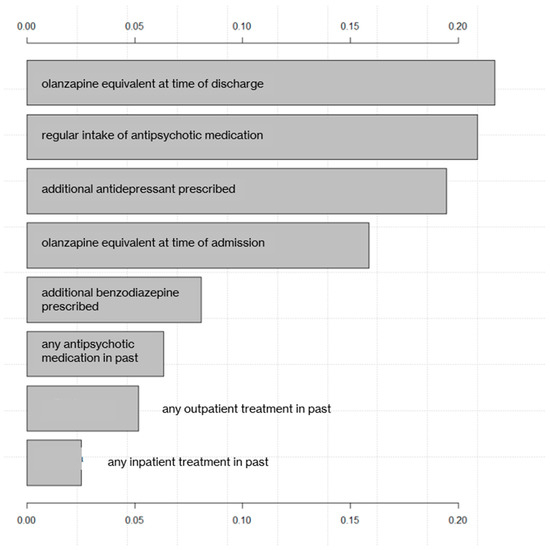 The significantly longer length of stay in the offender population is easily explicable through the circumstances of admission: patients admitted to a forensic psychiatric facility according to Article 59 of the Swiss Penal Code are to receive court-mandated treatment, which can last for up to 5 years as a first step, and this may even be prolonged afterwards if the offender’s risk of future offenses has not yet been sufficiently reduced [59]. The requirements to release offender patients from inpatient treatment are obviously much stricter than for SSD patients who have not proven to be dangerous to society. As briefly described in the Methods section, we, therefore, chose to omit this item for further analysis with ML. Otherwise, this variable would have dominated the entire model, even though it would only have been an expression of a structurally determined difference.