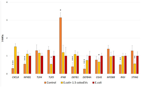 Mecocci, S.; De Paolis, L.; Zoccola, R.; Fruscione, F.; De Ciucis, C.G.; Chiaradia, E.; Moccia, V.; Tognoloni, A.; Pascucci, L.; Zoppi, S.; et al. Antimicrobial and Immunomodulatory Potential of Cow Colostrum Extracellular Vesicles (ColosEVs) in an Intestinal In Vitro Model. Biomedicines 2022, 10, 3264. https://doi.org/10.3390/biomedicines10123264