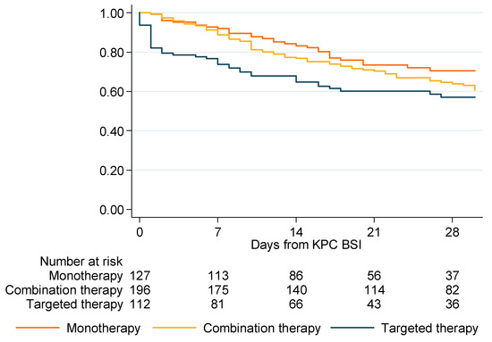 Targeted therapy was defined as the administration of any active antibiotic against KPC-Kp once the blood culture results were available to the clinicians.