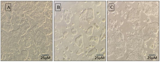 The appearance of Caco-2 cells is enhanced by synbiotic preventive therapy: Caco-2 cells were given the following dosage: (A) control, (B) ALD model: 100 mM ethanol, (C) synbiotic (100 mM + 10 g/mL AGE+ 109 CFU/mL cell-free supernatant) and 100 mM ethanol and restored the morphology of cells. All pictures were captured at an ×100.