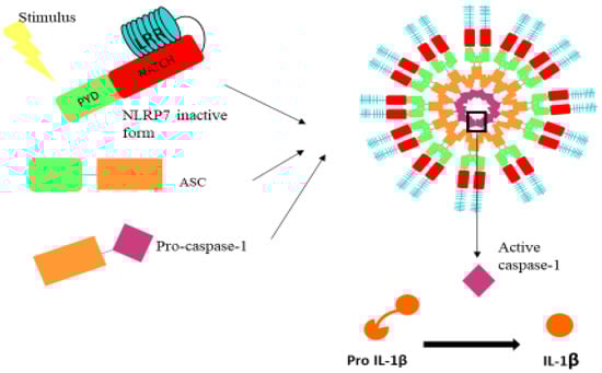- Carriere, J.; Dorfleutner, A.; Stehlik, C. NLRP7: From inflammasome regulation to human disease. Immunology 2021, 163, 363–376. [Google Scholar] [CrossRef]