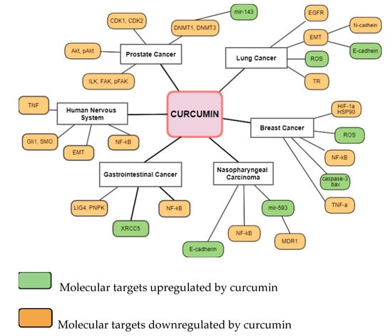 - Mortezaee, K.; Salehi, E.; Mirtavoos-Mahyari, H.; Motevaseli, E.; Najafi, M.; Farhood, B.; Rosengren, R.J.; Sahebkar, A. Mechanisms of apoptosis modulation by curcumin: Implications for cancer therapy. J. Cell. Physiol. 2019, 234, 12537–12550. [Google Scholar] [CrossRef] [PubMed]