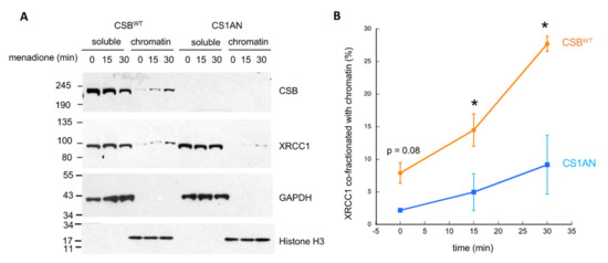 3.4. CSB Facilitates the Recruitment of XRCC1 to Oxidatively Damaged Chromatin