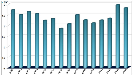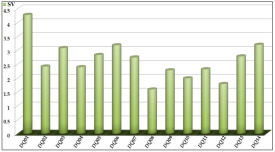The propensities of the D(GTI)cj descriptors in Model 1 are reported in Table 4, while the relative importance of each of them (measured by SV) is depicted in Figure 1.