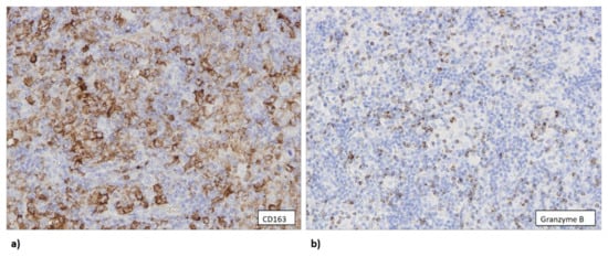 - Oudejans, J.J.; Kummer, J.A.; Jiwa, M.; van der Valk, P.; Ossenkoppele, G.J.; Kluin, P.M.; Kluin-Nelemans, J.C.; Meijer, C.J. Granzyme B expression in Reed-Sternberg cells of Hodgkin’s disease. Am. J. Pathol. 1996, 148, 233–240. [Google Scholar] [PubMed]