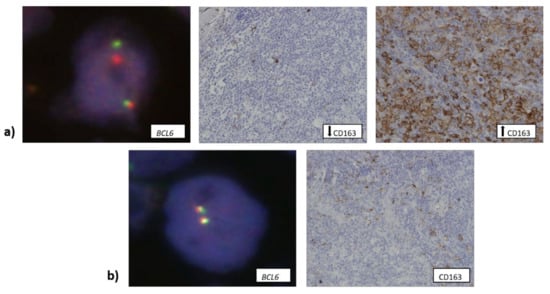 - Al Sayed Ahmed, H.; Raslan, W.F.; Deifalla, A.H.S.; Fathallah, M.D. CD163 is a predictive biomarker for prognosis of classical Hodgkin’s lymphoma in Saudi patients. Mol. Clin. Oncol. 2019, 11, 67–76. [Google Scholar] [CrossRef]