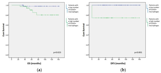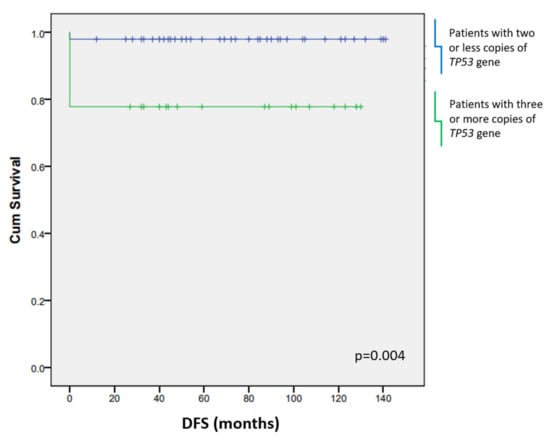 3.4. CD163+ Macrophages and Additional TP53 Copies Affect the Patients’ Survival