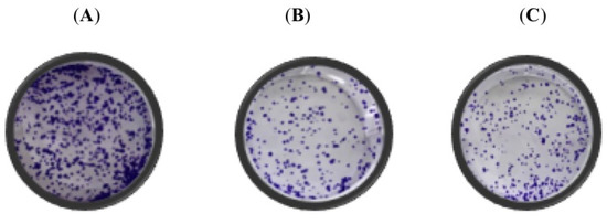 Data from the effect of PD and PII on cell viability of colorectal cancer cells revealed that PD and PII exhibited potent inhibition at low concentration of 0.5 to 1 µM. To further assess their impact on proliferation, DLD-1 and HCT116 cells were individually treated with 0.5 µM of PD or PII for 72 h and then were sub-cultured in 6-well plates in drug-free medium and allowed to form colonies over a period of 7–9 days in the absence of the compounds. A representative image of the control sample is shown in Figure 2A, PD-treated sample (B), PII-treated sample (C). The colony-forming efficiency of DLD-1 cells was significantly impacted, as very few colonies were observed in the treatment group when compared to the control group. Data from HCT116 were similar to that observed in DLD-1 cells as shown in Figure 2D–F for the control group, the PD-treated group and the PII-treated group respectively. The inhibition of proliferation observed was sustained because the colonies were reduced, even on withdrawal of the compounds. For each of the cell lines, the data were normalized to the control group as shown in Figure 2G. The observation of a significant decrease in the number of colonies in both the cell systems reflects upon the impact of PD and PII on the entities governing the proliferation ability of the colorectal cancer cells.