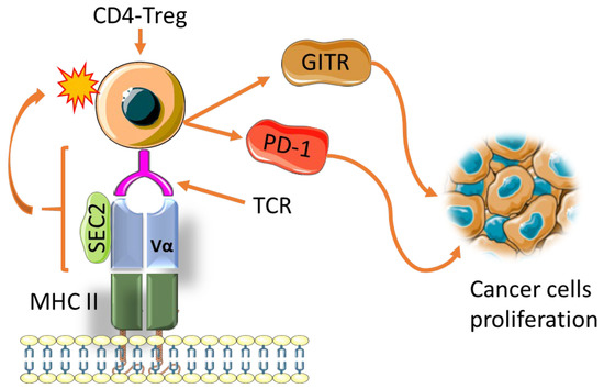 Enhanced immunosuppressive effect of SEC2-induced by activation of related cytokines serves as a barrier for effectively using these SEs as a treatment for cancer. Immunosuppressive Tregs are the major source of immune checkpoints such as GITR and also express PD-1. Tregs use these cytokines as one of the multiple ways to block anticancer mechanisms and aid in cancer cell proliferation and survival.