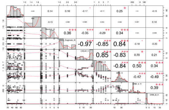 Furthermore, we extracted correlations between each pair of clinical predictors as shown in Figure 3 and observed that the variables Marshall, Entry Diagnosis, CRS-R, RLAS and DRS scores were the most correlated features.