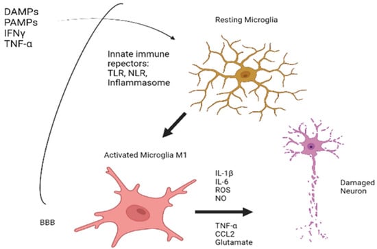 After the binding of these innate immune receptors with their peripheral “alarm” ligand, the result will be a subsequent activation of microglia into two states:
