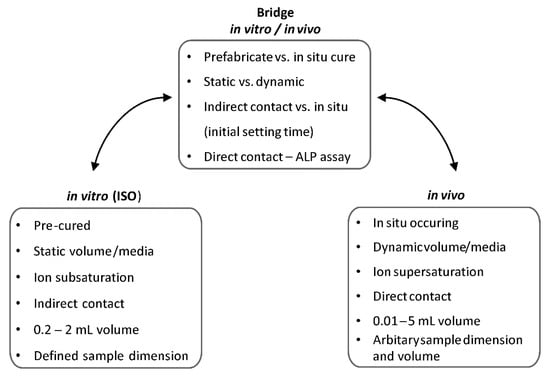 Briefly, the approach taken in this study was to (a) collect leach from in-situ curing PMCs for indirect testing (soluble fraction only, no precipitants); (b) screen the ion concentrations released in the media using ICP-OES; (c) compare how ion release (soluble fraction only) was affected by the composition, sample dimensions (e.g., mass, shape), curing time, and incubation time; and (d) how indirect contact and direct contact with the adhesive affected the survival and differentiation of osteogenic cell types: odontoblasts (MDPC-23) and osteoblasts (MC3T3-E1) (Figure 2).