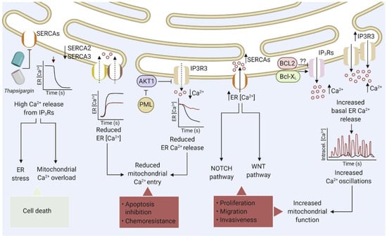 Cancer-associated defects of endoplasmic reticulum Ca2+ homeostasis. Reproduced with permission from ref. []. Copyright Elsevier 2020.