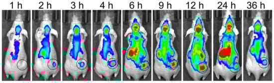 Fluorescence imaging in vivo after intravenous injection with SQU@PCN. Reproduced from ref. []. Copyright © 2019 American Chemical Society.