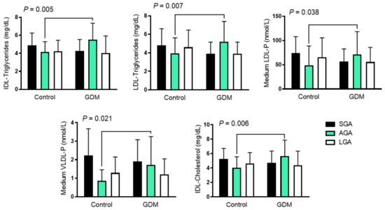 3.2. GDM Alters the Cord Blood Lipoprotein Profile across Birth-Weight Categories